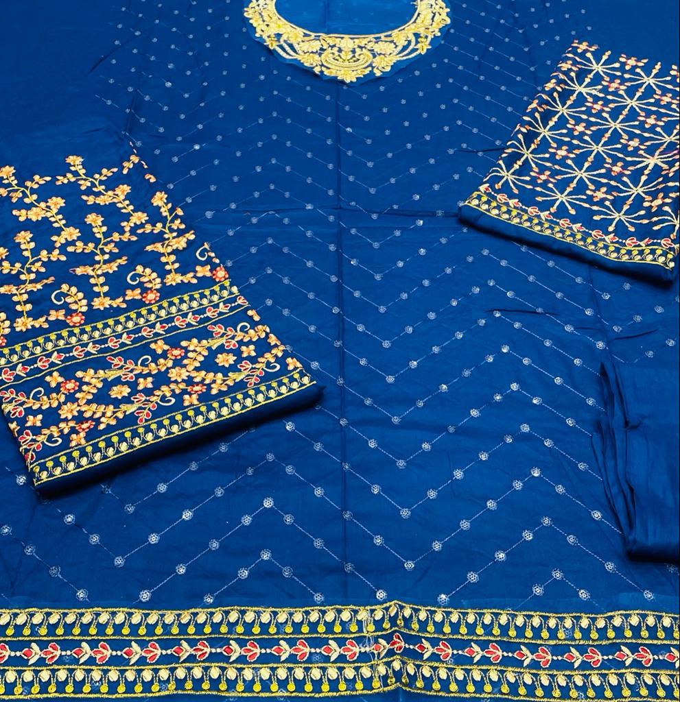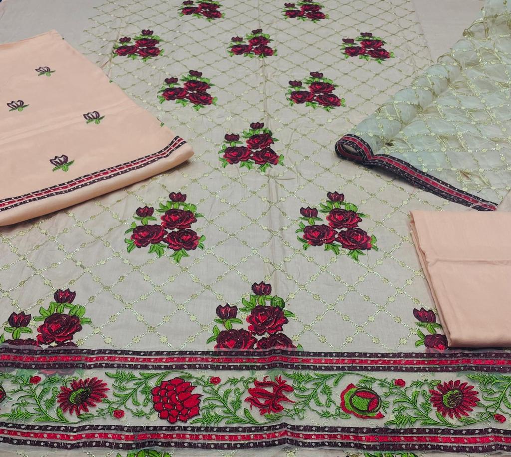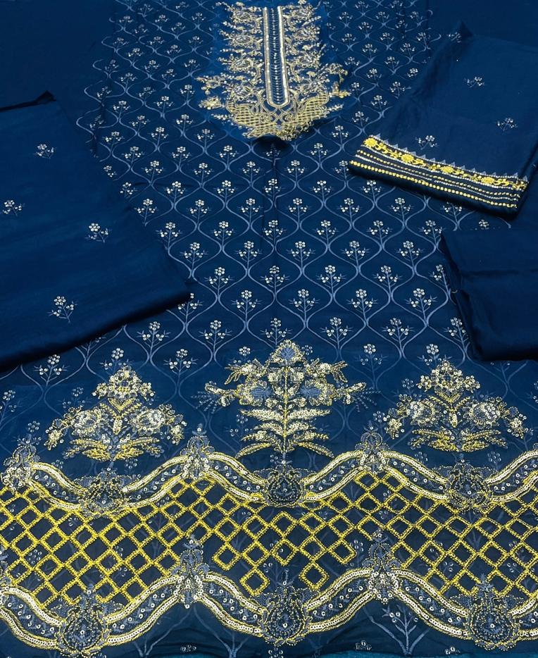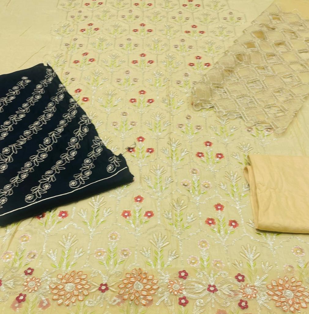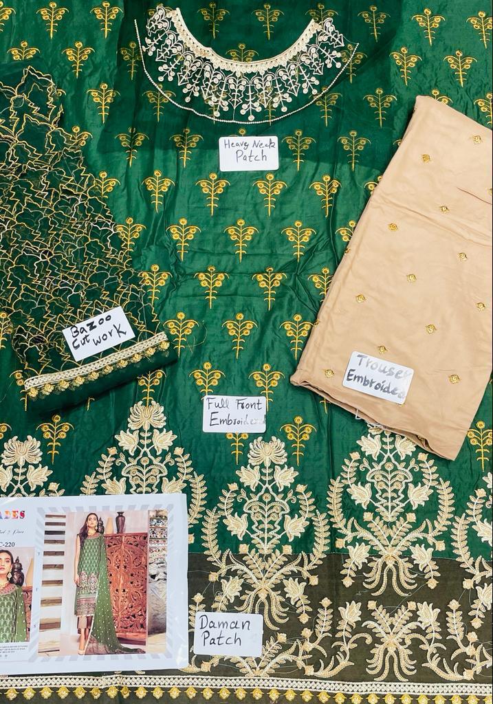 Front Full Heavy Embroidered Best Quality Linen 2pc